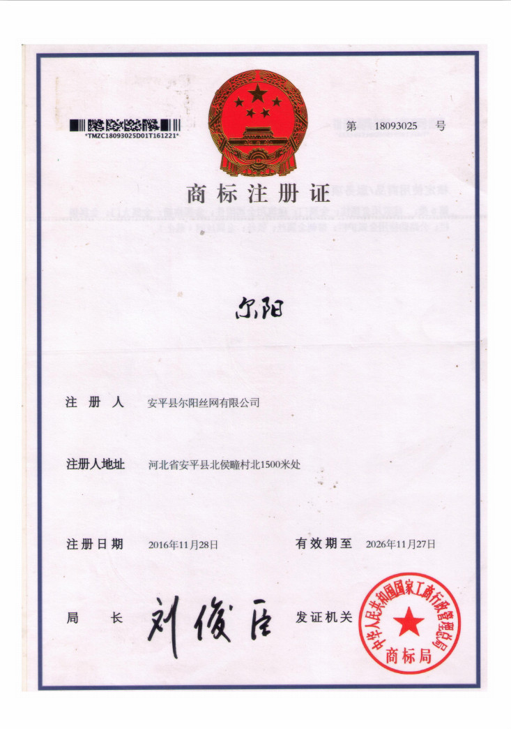 Copyright ??河北爾陽絲網(wǎng)有限公司 版權(quán)所有 冀ICP備13009383號-3 全國服務電話:15076852780 ? 傳真:0318-7615788 公司地址:河北省安平縣城西開發(fā)區(qū)
